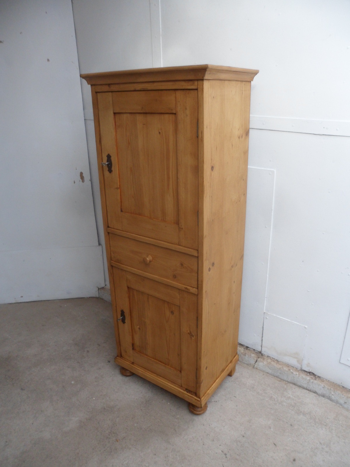 Superbly Waxed Tall Thin 2 Door 1 Drawer Multi Functional Storage Cupboard c.1920