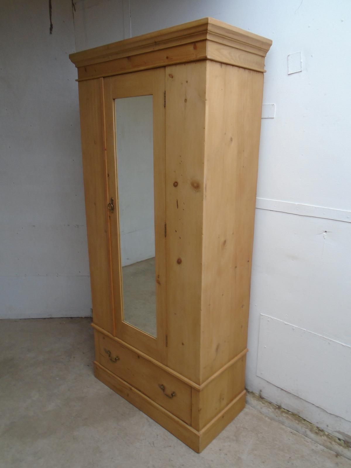 Superbly Waxed Victorian Antique Pine 1 Door 2 Piece Mirrored Wardrobe