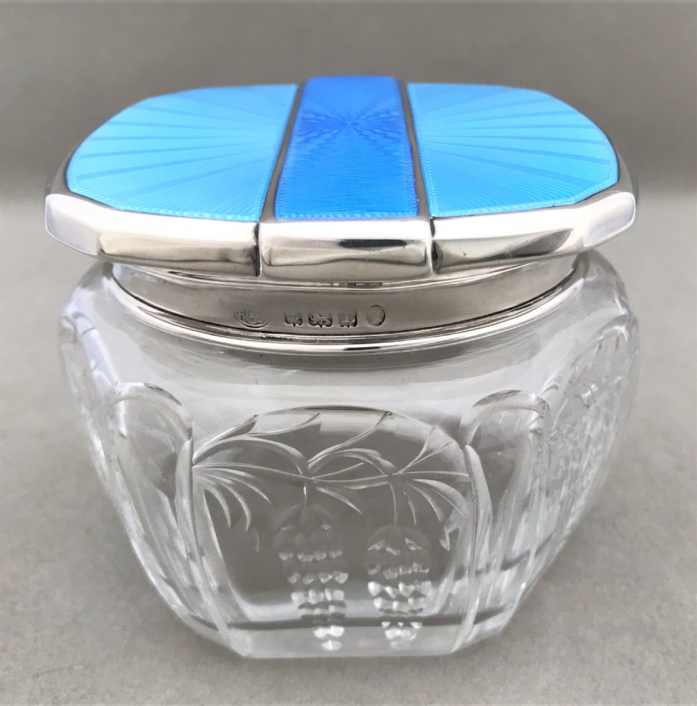 Superior Art Deco Silver & Guilloche Enamel Powder Bowl (1 of 1)