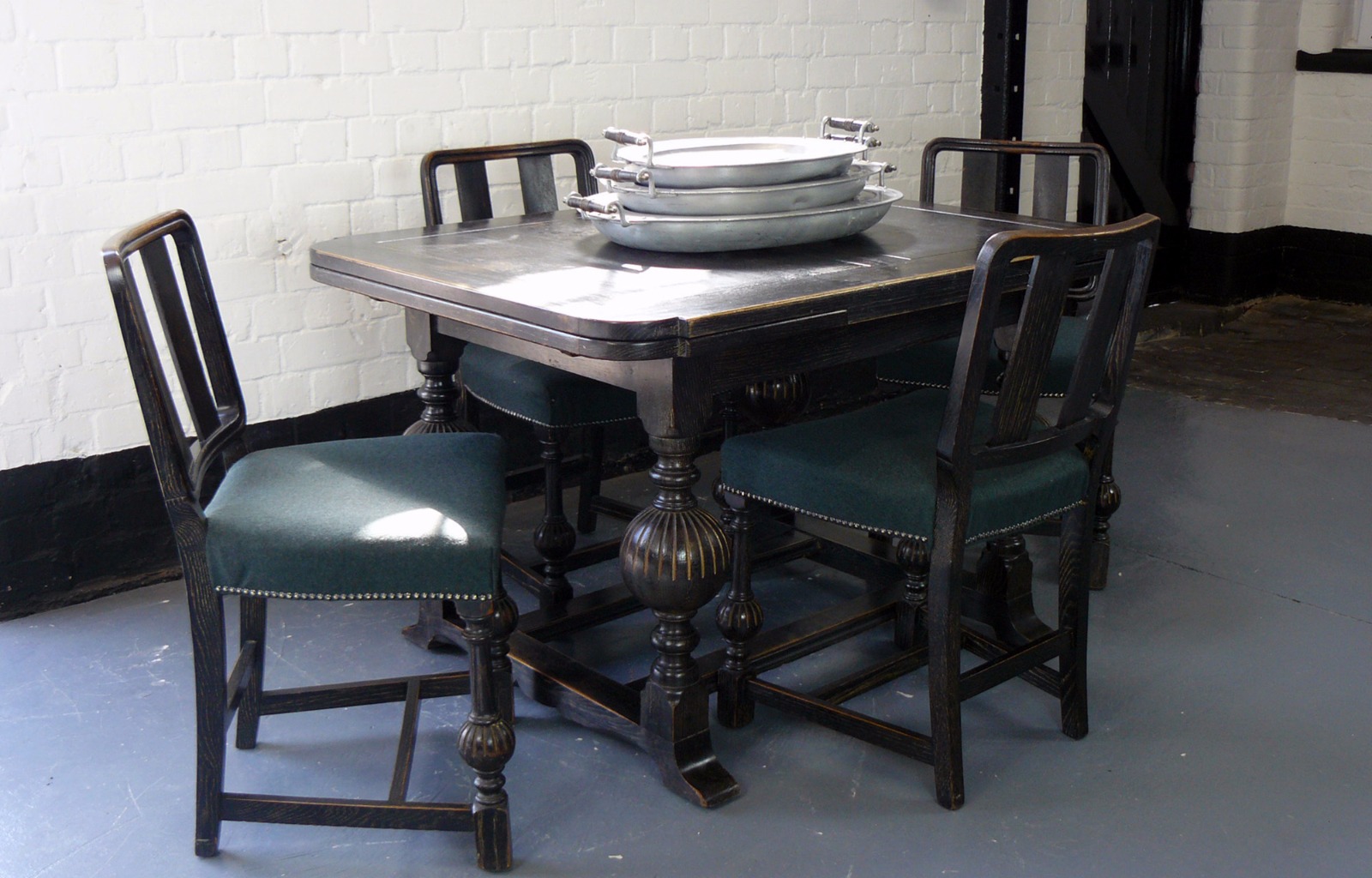 Superior Quality Art Deco Ebonised Oak Dining Table and Four Chairs