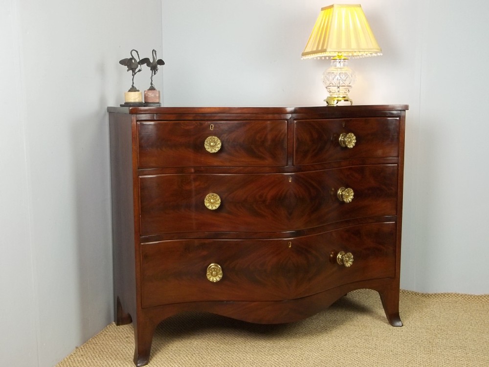 Superior Quality Hepplewhite 18th Century Georgian Mahogany Serpentine Shaped Commode Chest of Drawers