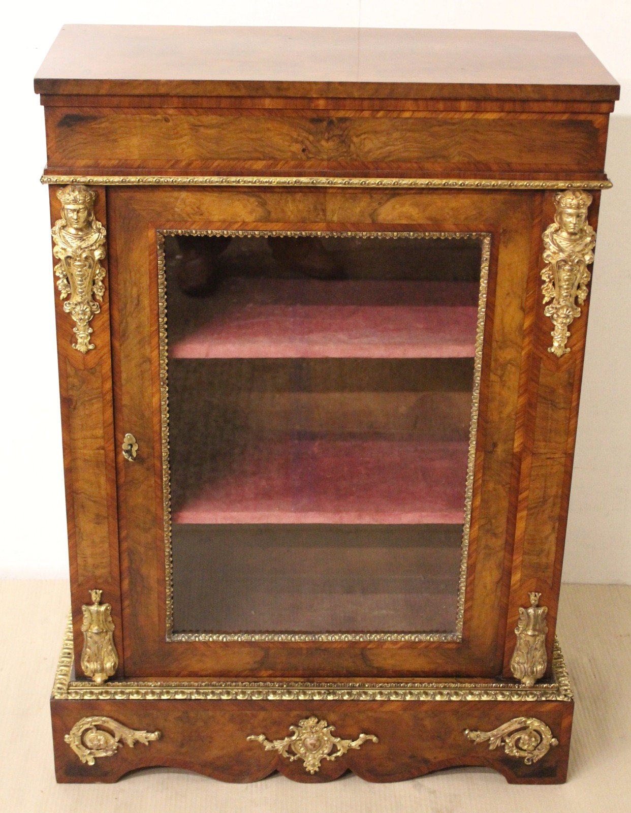 Superior Victorian Burr Walnut Pier Cabinet