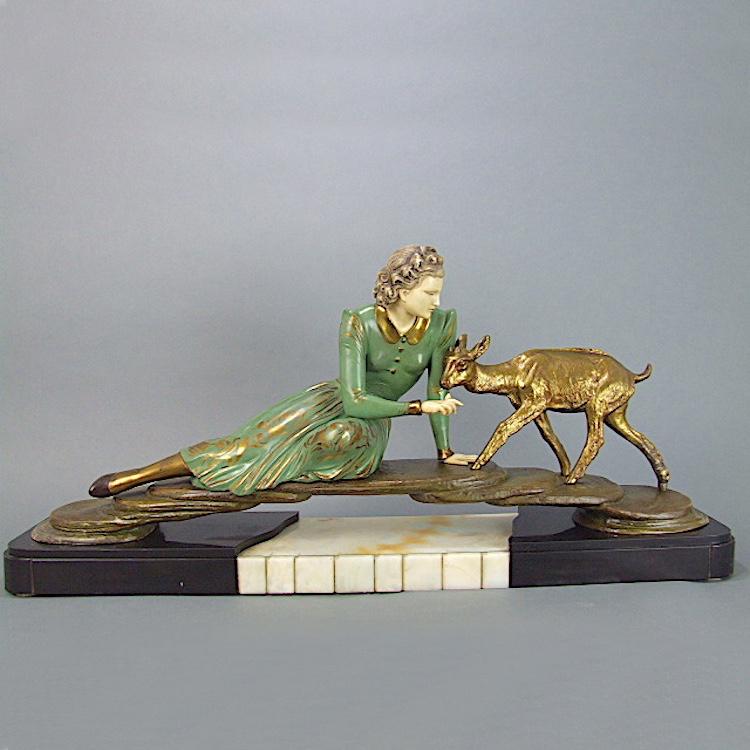 Sur la Passerelle Art Deco Figure by Menneville