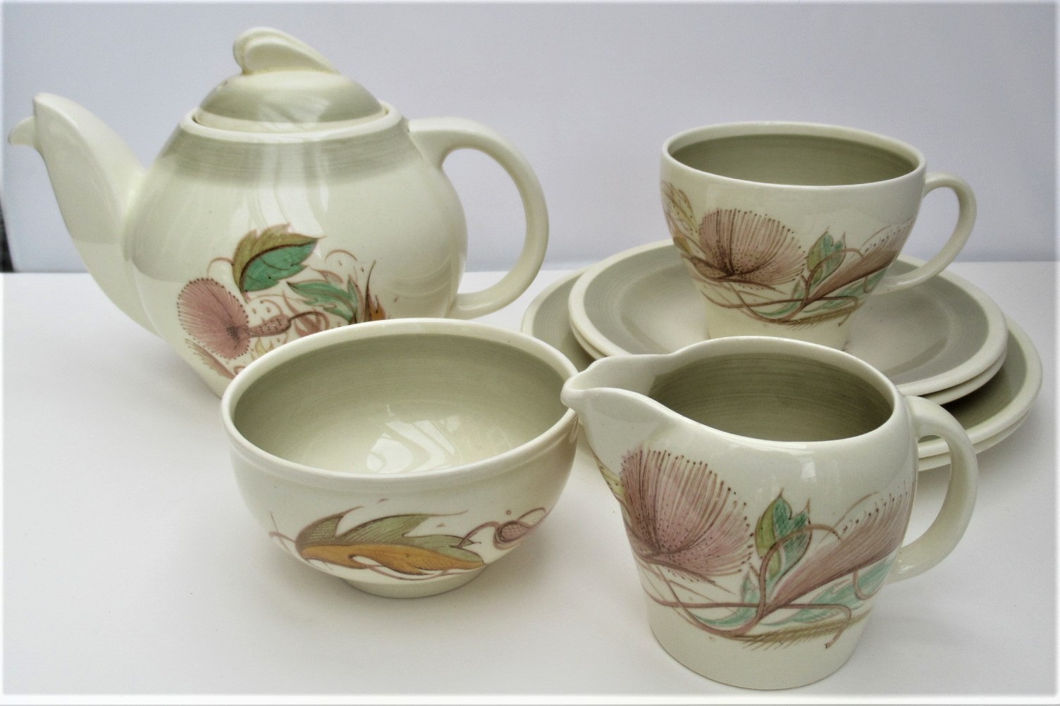 Susie Cooper Crown Works Burslem Kestrel Shape Bachelor Tea Set, Sea Anemone Design c.1951
