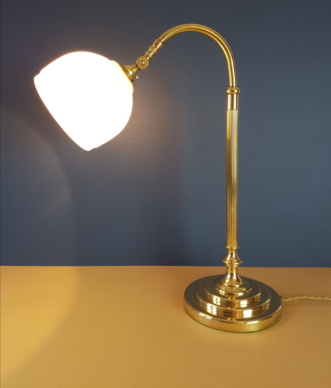 Swan Neck Adjustable Brass Table Desk Lamp, Rewired c.1920