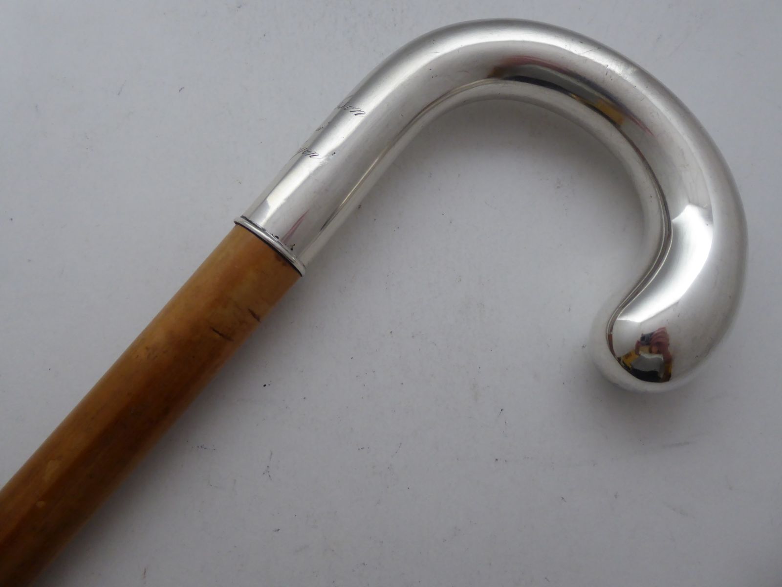 Swedish 1920s Walking Stick Cane Hallmarked Solid Silver Pommel Malacca Shaft