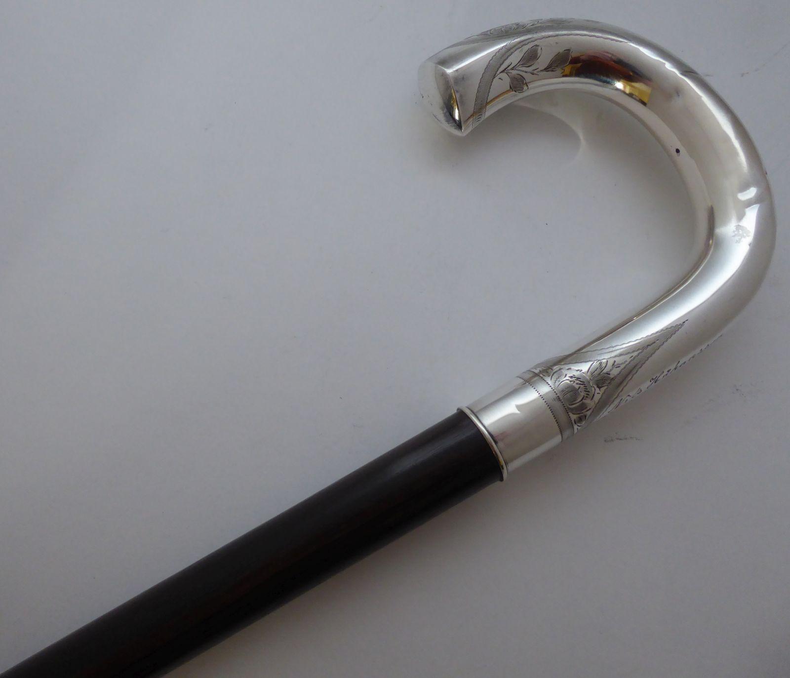 Swedish 1929 Walking Stick Cane Solid Silver Pommel Rosewood Shaft