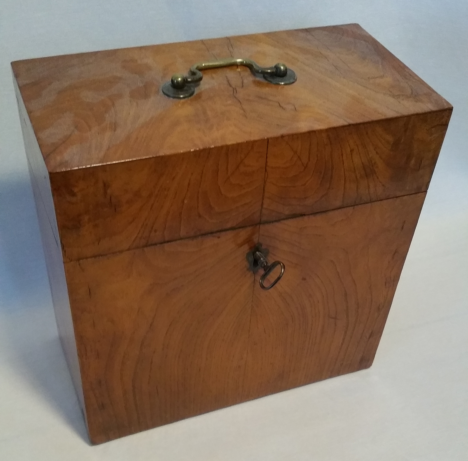 Swedish Elm Wood Box with Three Engraved Bottles C.1820
