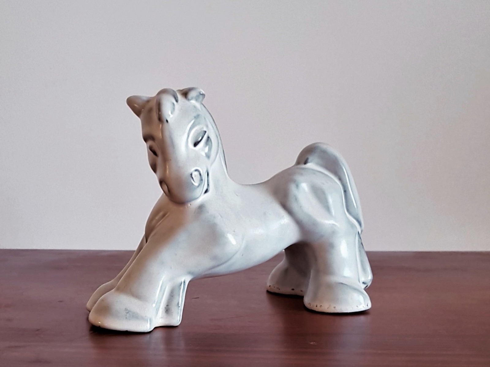 Swedish Gefle Ceramics by Maggie Wibom Art Deco White Glaze Stoneware Horse Figurine