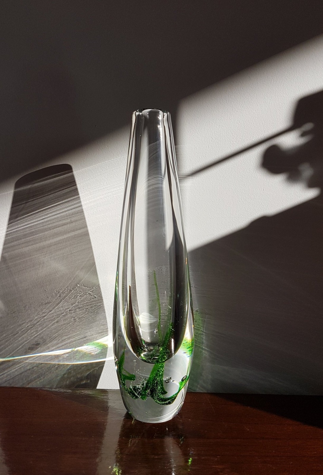 Swedish Kosta 'Boda' Seaweed Series Art Glass Vase by Vicke Lindstrand - Labelled & Signed