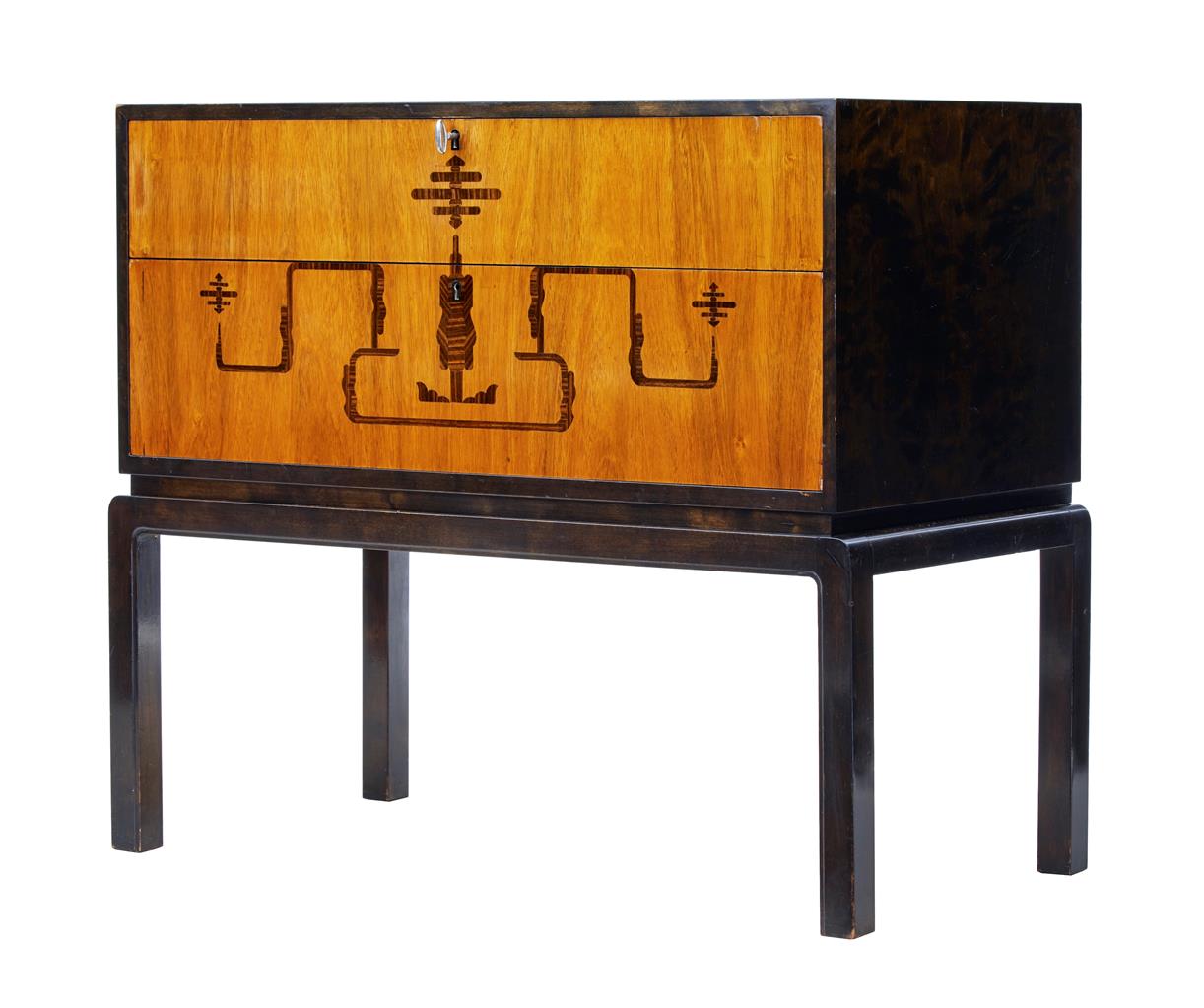 Swedish Late Art Deco Birch Inlaid Small Chest of Drawers (1 of 1)