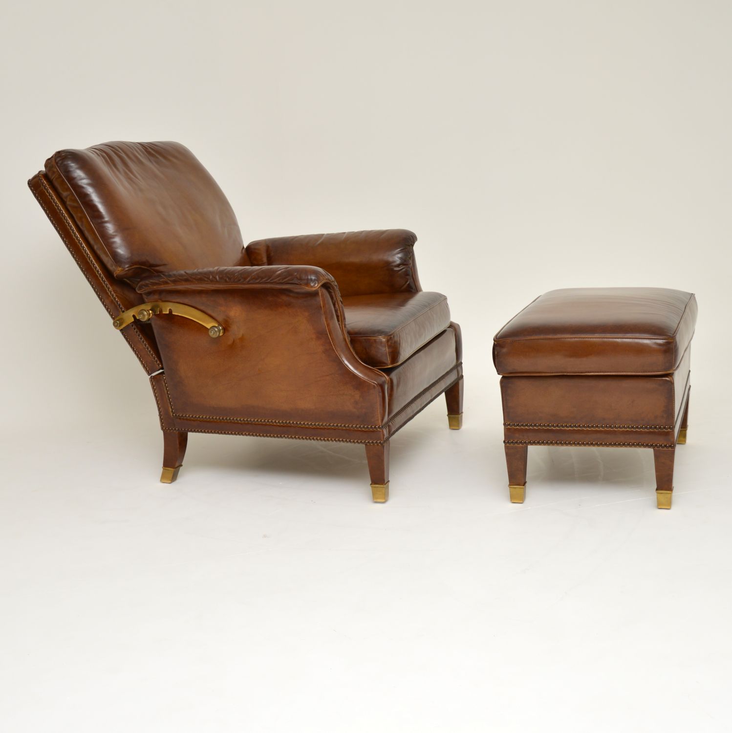 Swedish Leather & Brass Reclining Armchair & Stool (1 of 1)