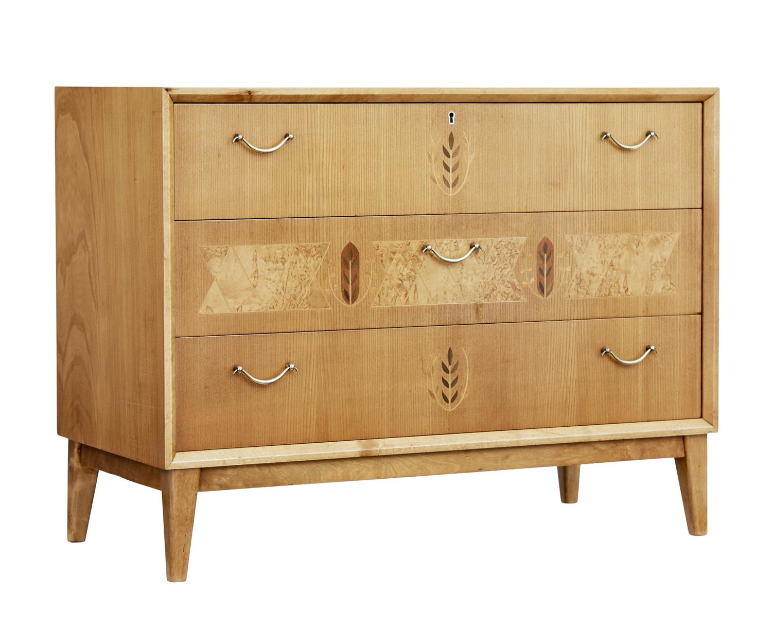 Swedish Mid 20th Century Elm Inlaid Chest of Drawers (1 of 8)