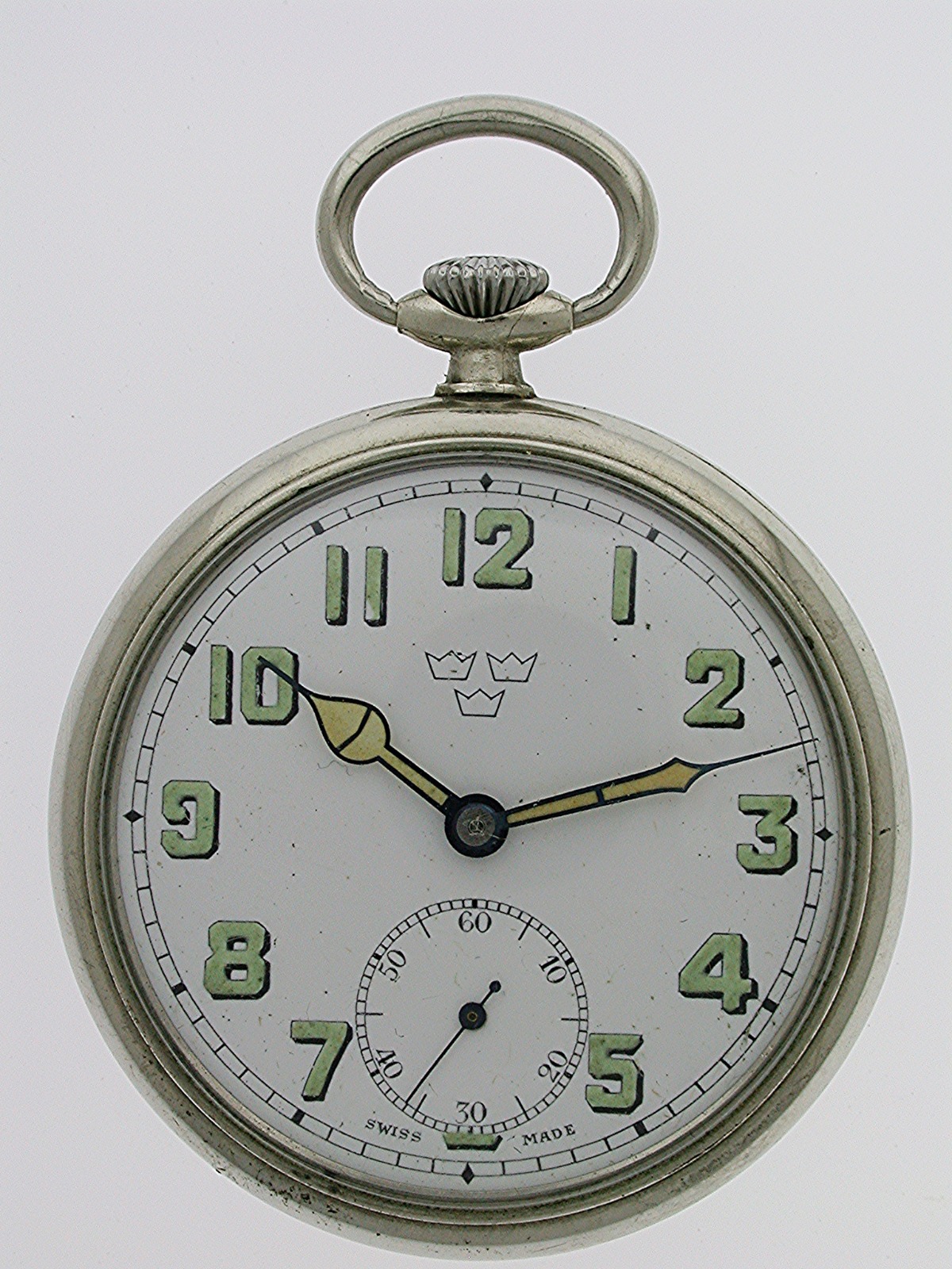 Swedish Military Steel Pocket Watch Swiss Made 1940 (1 of 1)