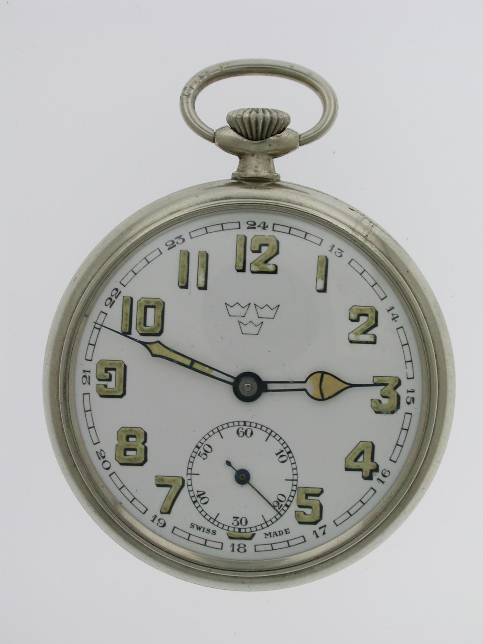 Swedish Military Steel Royal Pocket Watch 1940 – “tre Kronor”