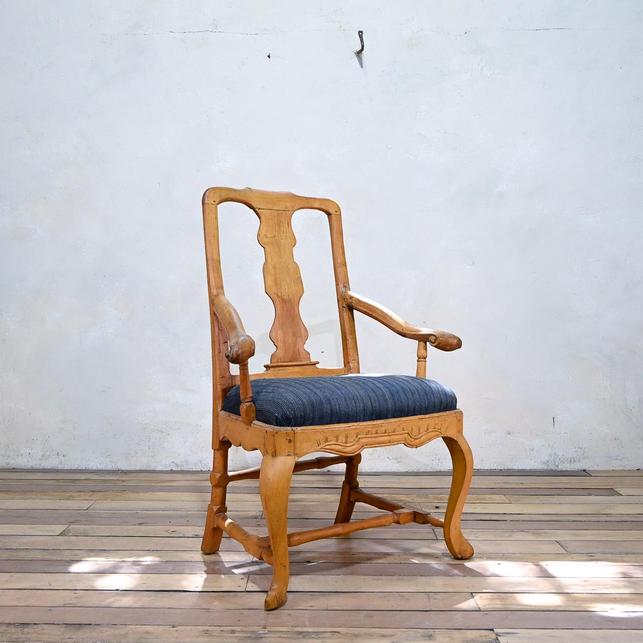 Swedish Rococo 18th Century Open Armchair - Side Chair Fruitwood