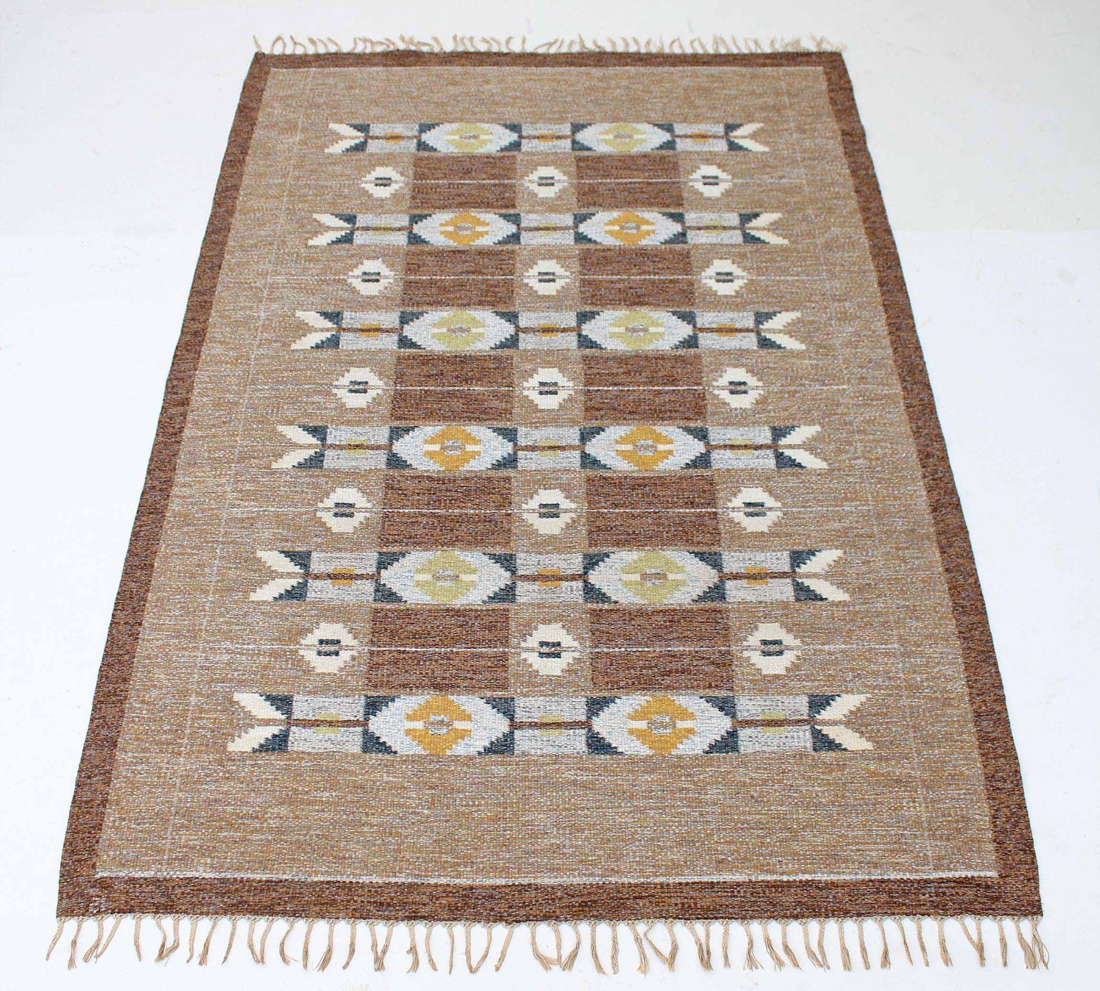 Swedish Rolakan Hand Woven Wool Rug Signed 'Is' (10" X 6'6")