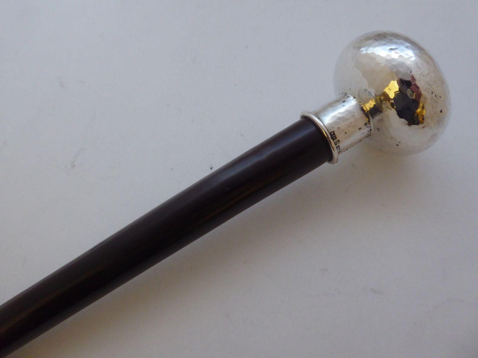 Swedish Walking Stick Cane 1911 Solid Silver Pommel Lignum Vitae Shaft