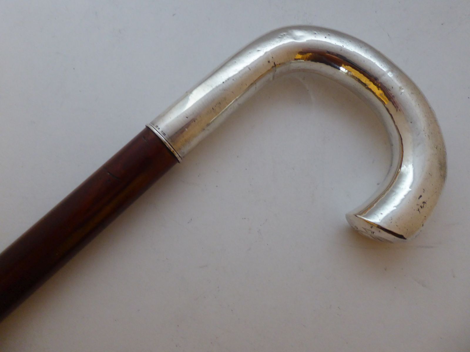 Swedish Walking Stick Cane 1920s Hallmarked Solid Silver Malacca Wood Shaft