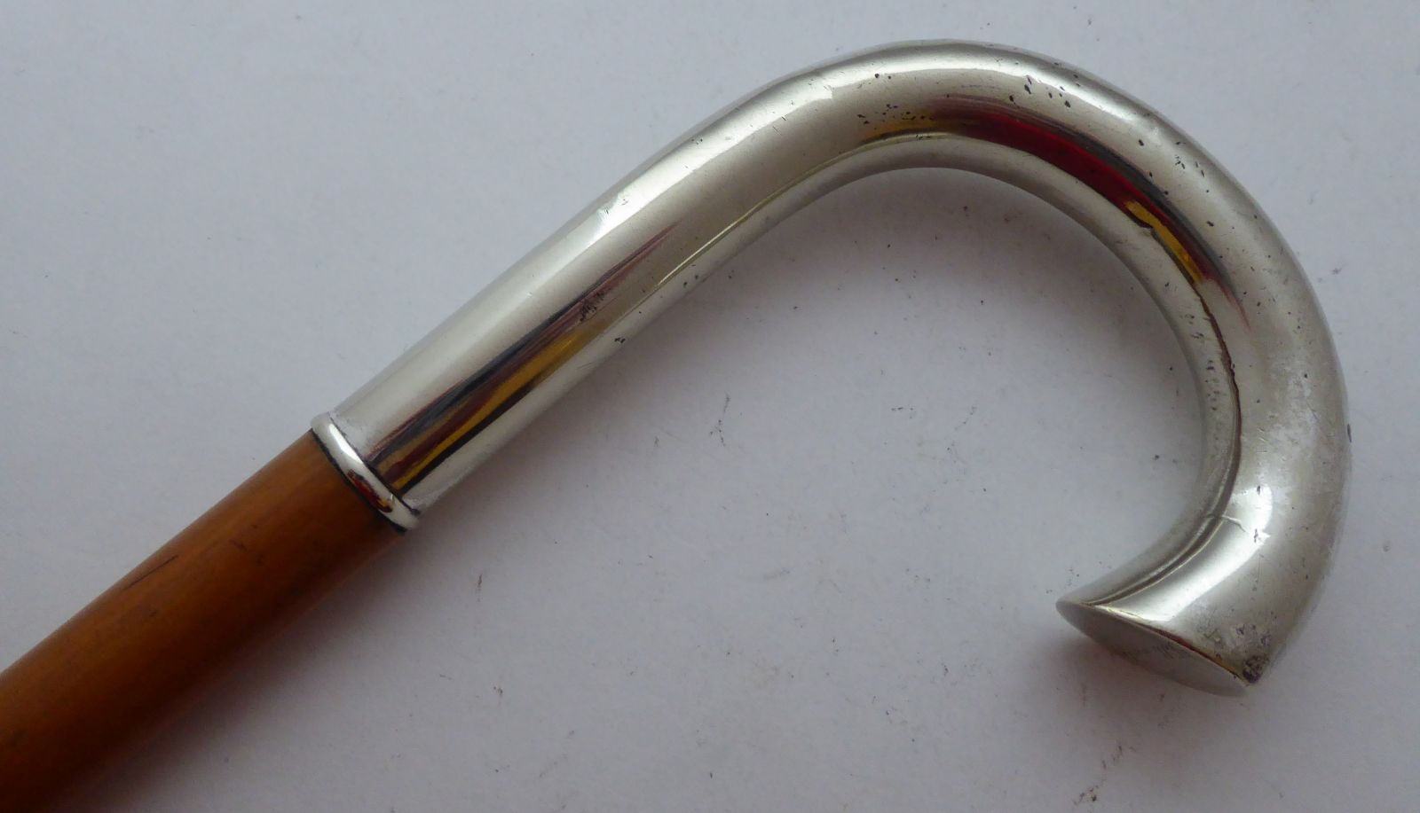 Swedish Walking Stick Cane 1920'S Silver Plate Handle Malacca Shaft "To Grandpa"