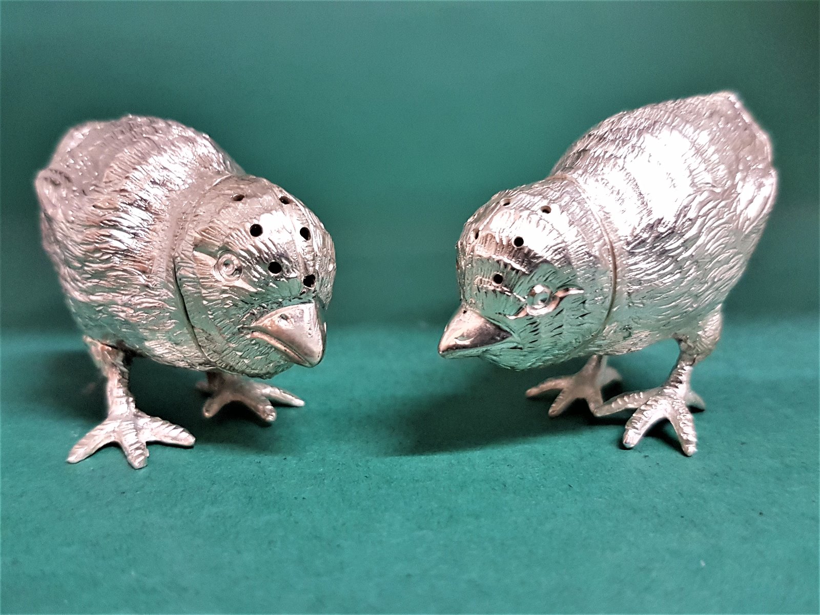 Sweet Pair of Antique Edwardian Silver Bird Peppers