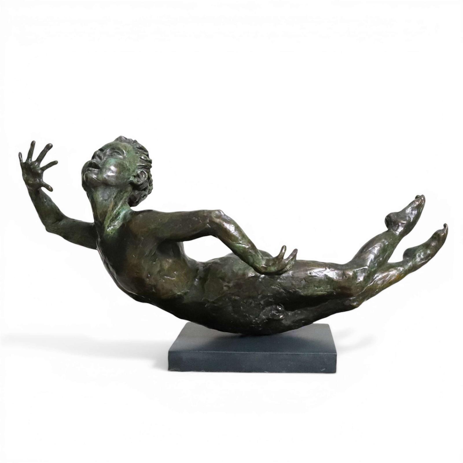 Contemporary bronze sculpture “Swimming Boy” by Russian‑born artist EVA, signed and dated. A beautifully modelled figurative work with exceptional emotional presence, cast in bronze using traditional methods and displaying the expressive realism characteristic of contemporary Eastern European sculpture.