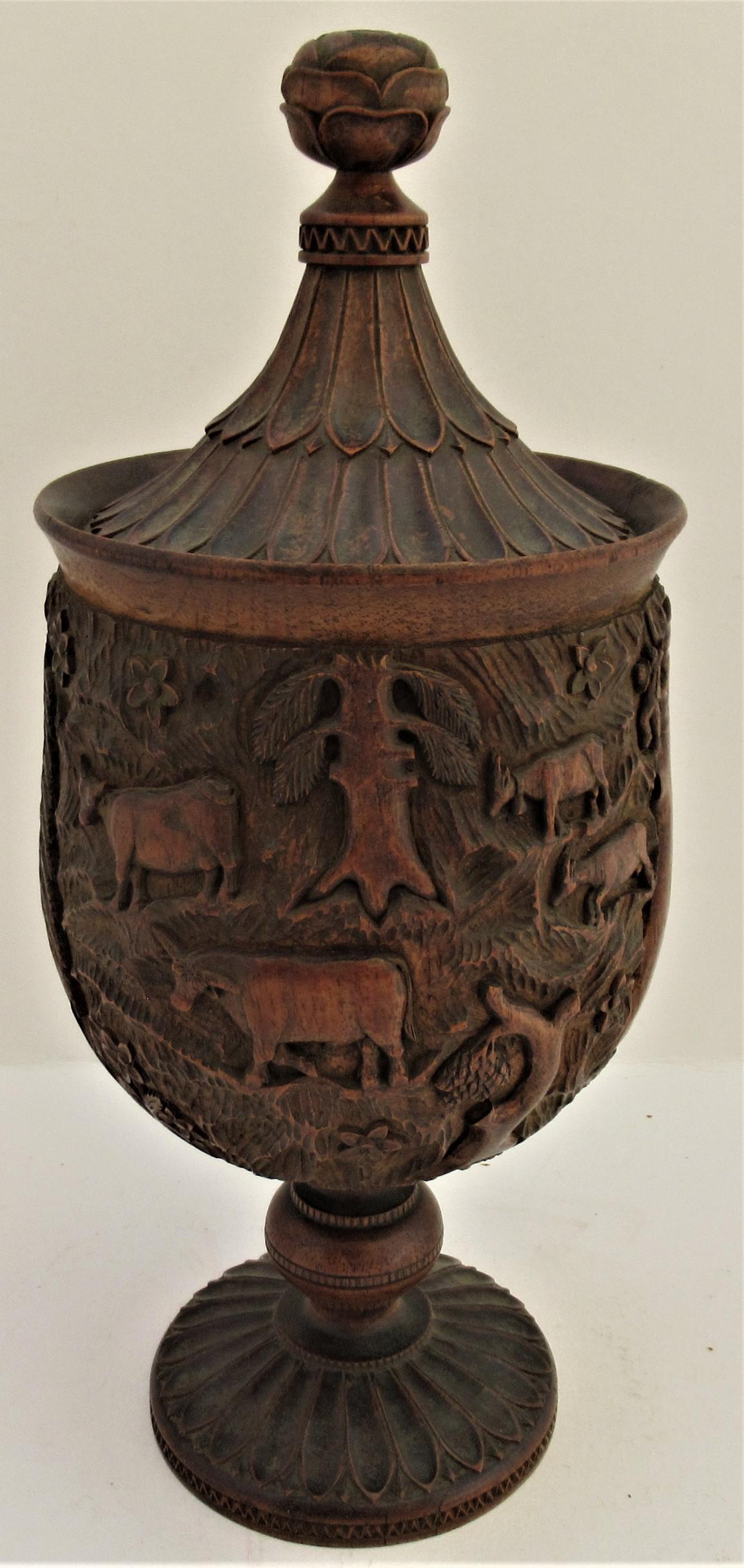 Swiss Black Forest Carved Limewoood Cup & Cover, Early 20th Century, with Farmyard Scenes