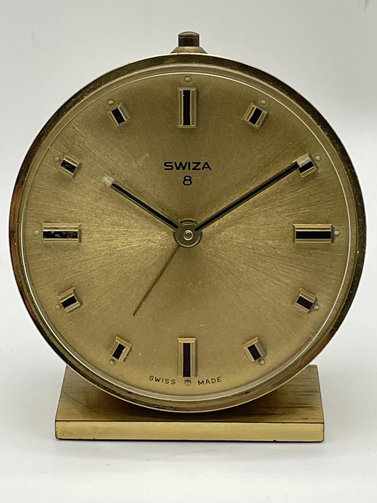 A small alarm clock by SWIZA. Swiss 8 day movement running well and keeping reasonable time but untouched by us so carries no guarantee other than those offered regards "Distance Selling Regulations".