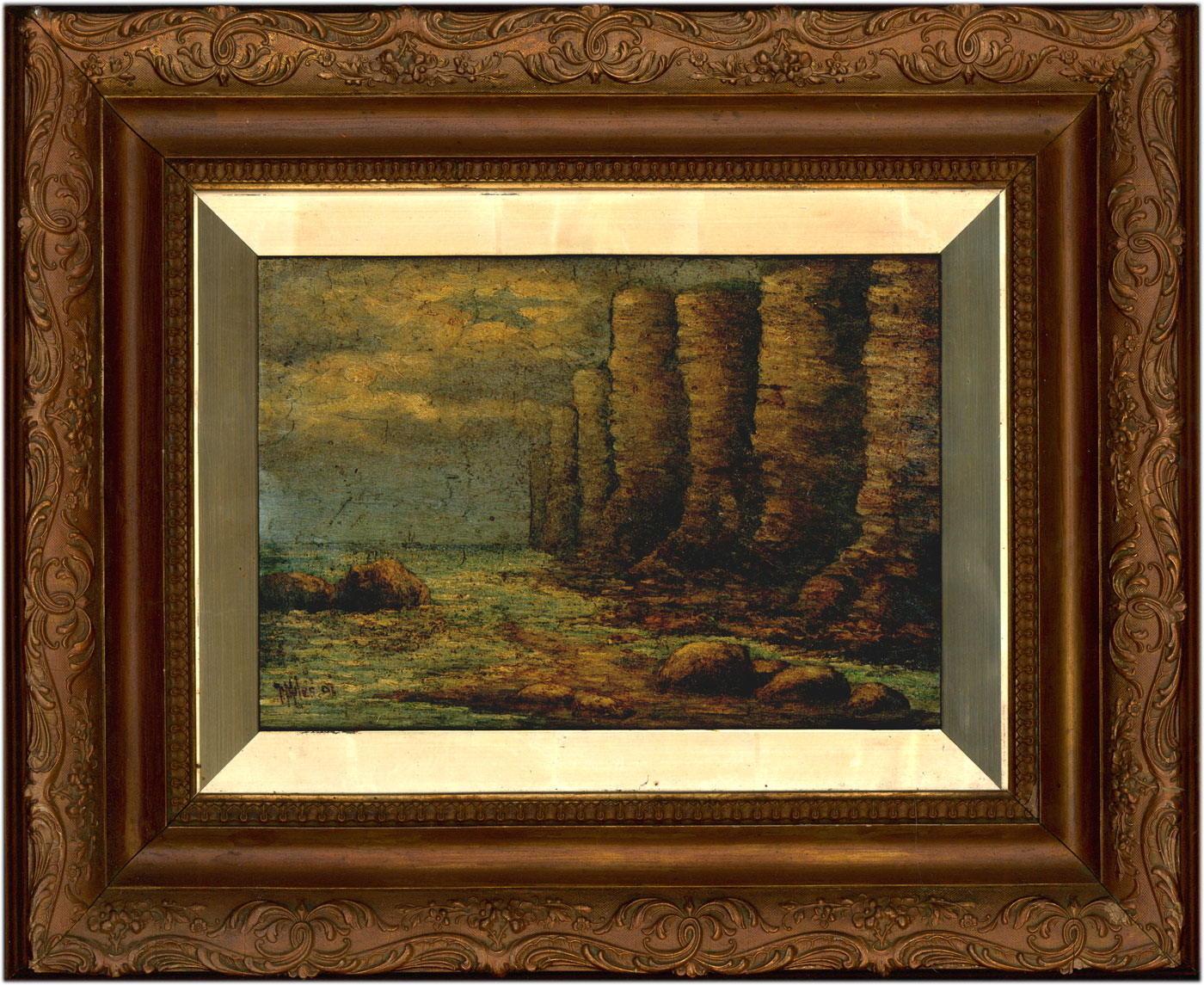 T. Miles - Gilt Framed 1907 Oil, Coastal Scene