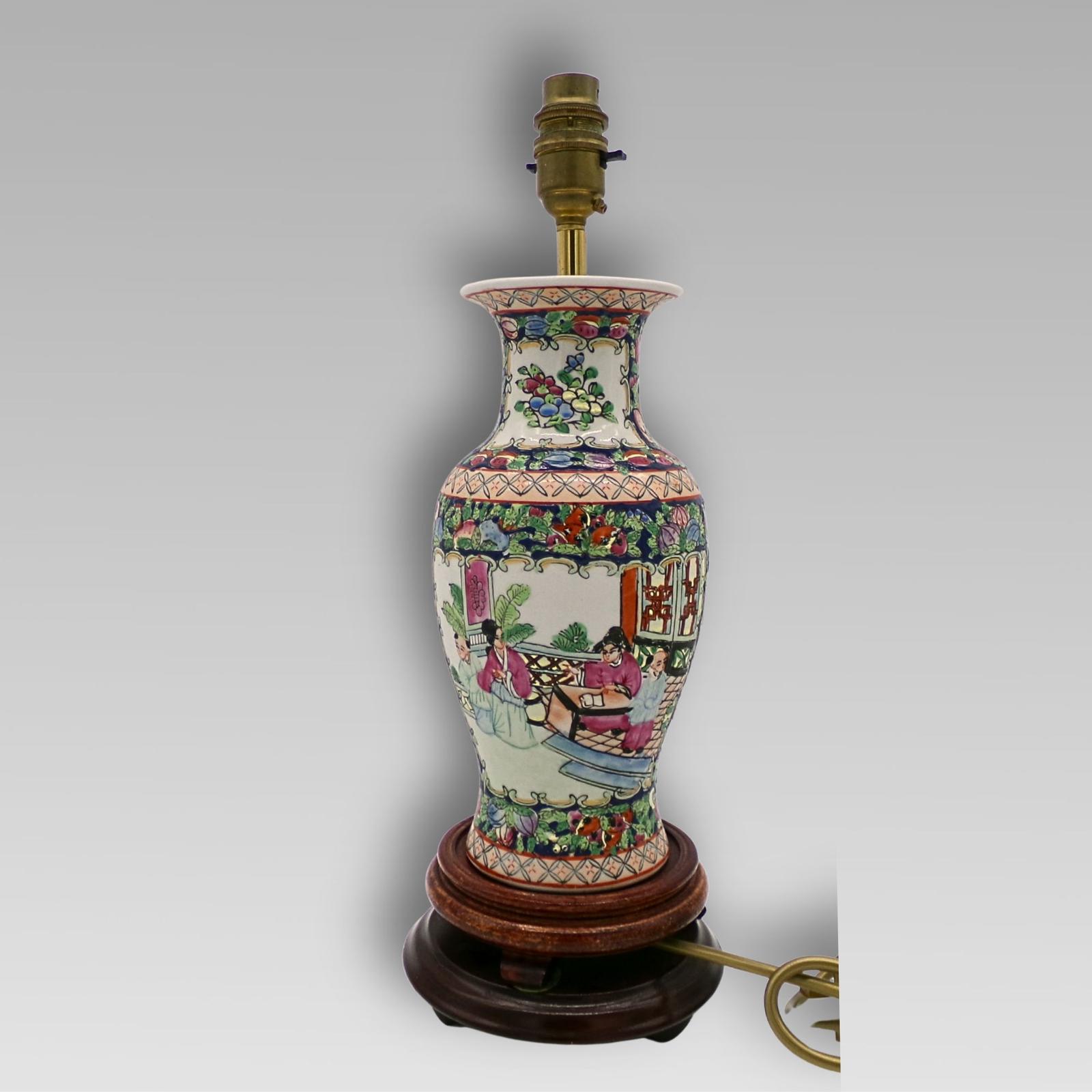 This Table Lamp Oriental Chinese Charming Vintage Chinese Famille Rose Oriental Hand Painted Porcelain Table Lamp is located in Berkshire, United Kingdom