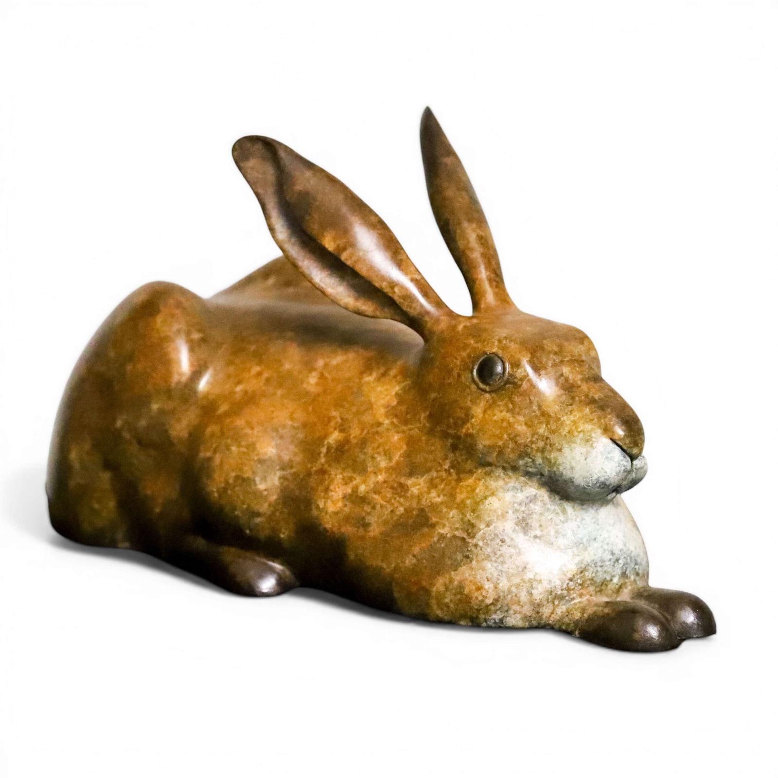 Taking It Easy - a finely modelled bronze rabbit by English artist Richard J. Smith (b.1955), presented here as the rare artist’s copy. Cast using the traditional lost‑wax method, this serene and naturalistic sculpture reflects Smith’s celebrated precision and sensitivity, honed through a career spanning illustration, medical art and internationally collected wildlife painting.