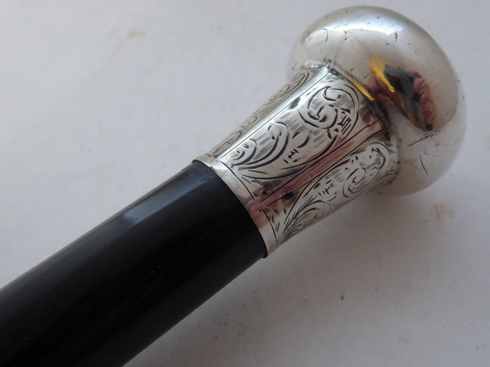 Tall 1906 Walking Stick Cane Hallmarked Solid Silver Pommel Ebony Wood Shaft