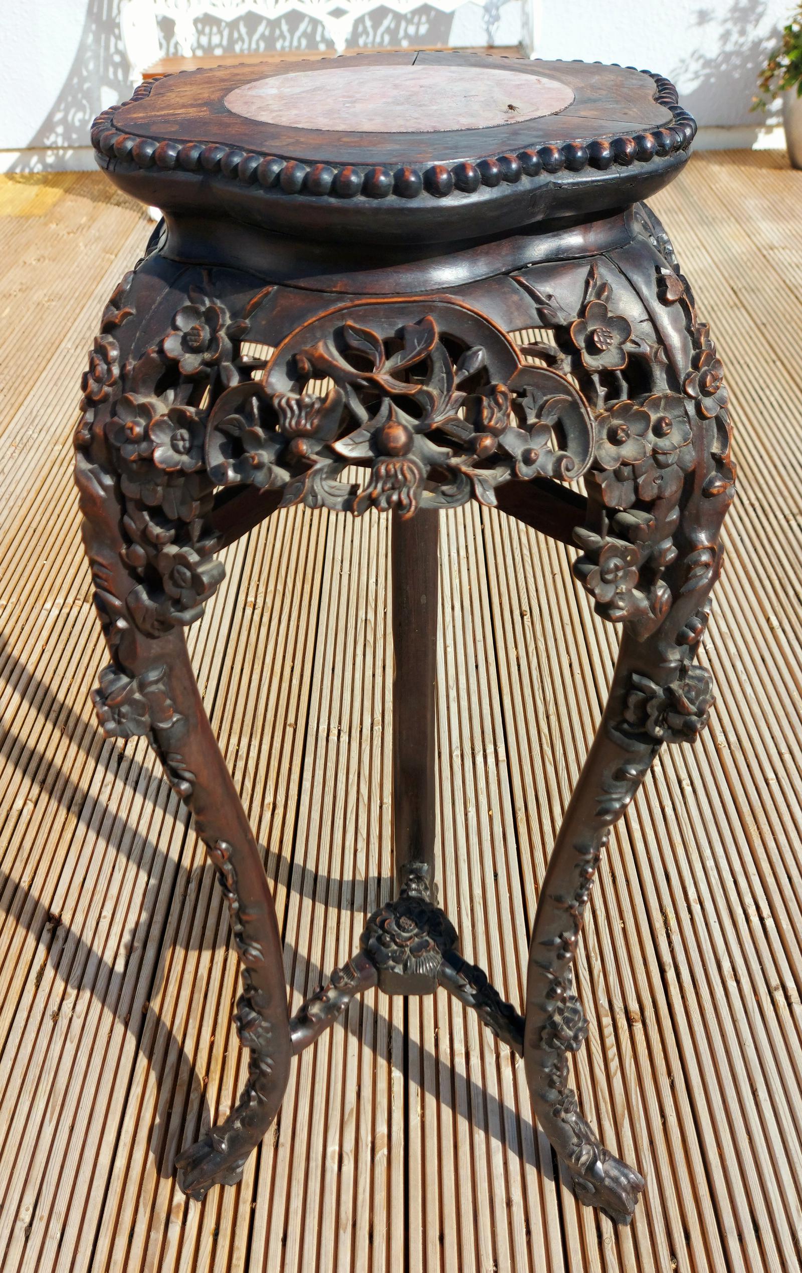 Tall 19th Century Chinese Marble Top Stand