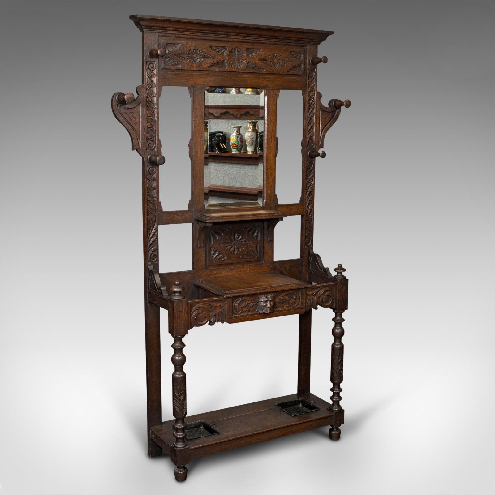Tall Antique Hall Stand, English Oak, Coat Rack, Gothic Revival, Victorian (1 of 12)