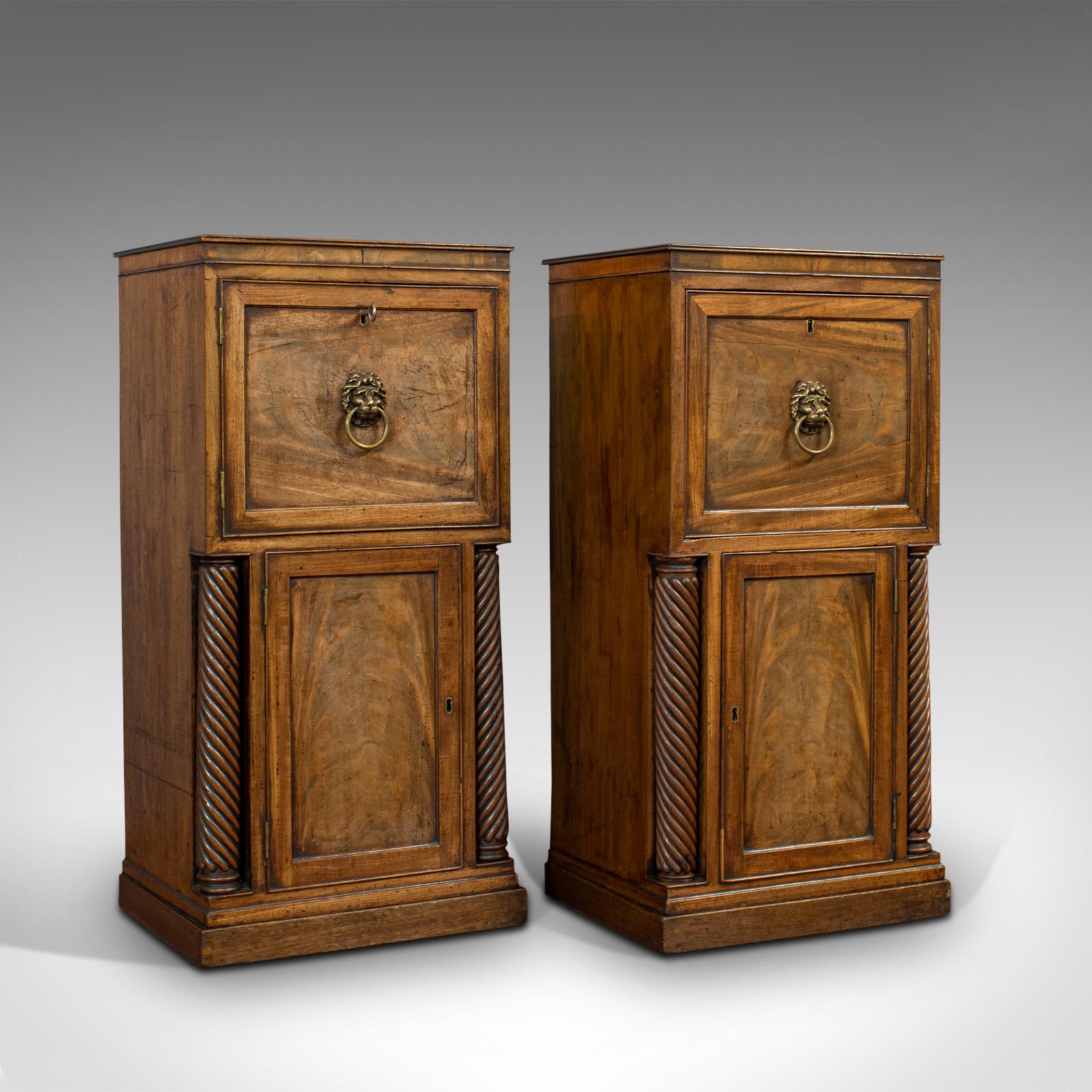 Tall, Antique, Pair of, Side Cabinets, English, Mahogany, Nightstand, Regency