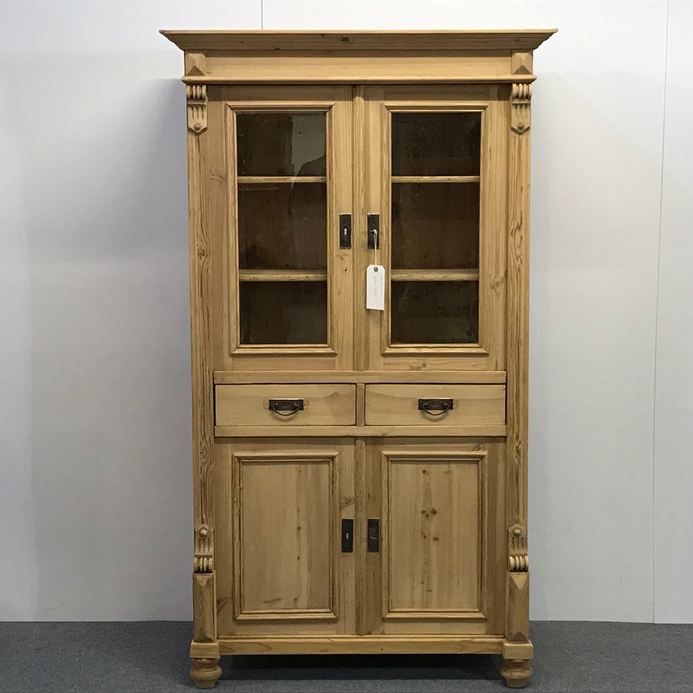 Tall Antique Pine Display Cabinet c.1910