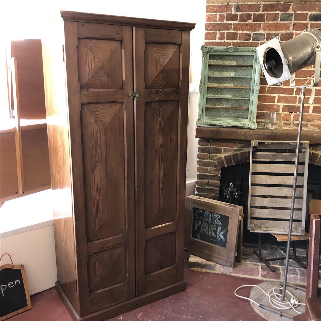 Tall Antique Pitch Pine School or Kitchen Larder Cupboard