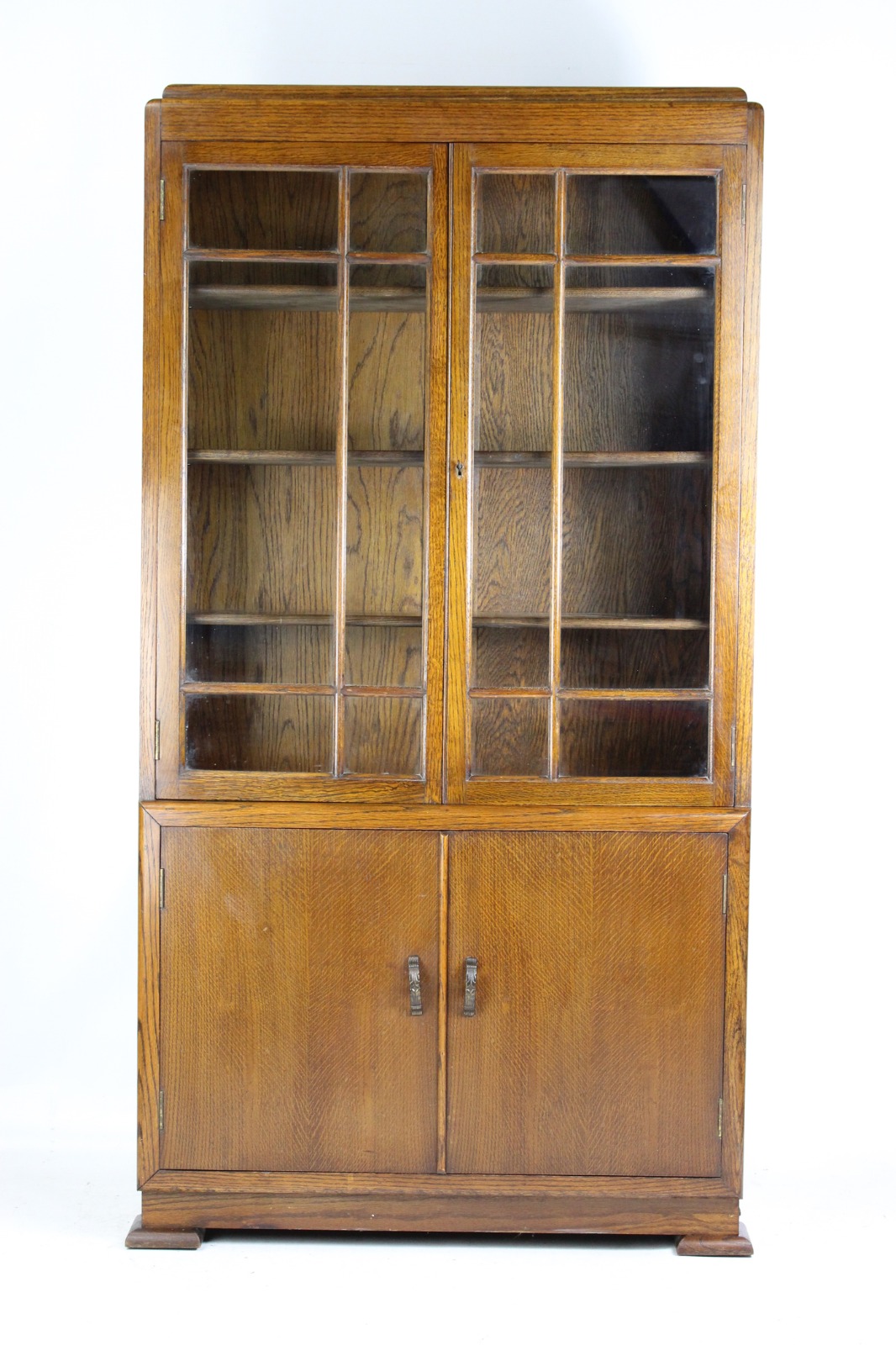 Tall Art Deco Oak Bookcase c.1930 (1 of 1)