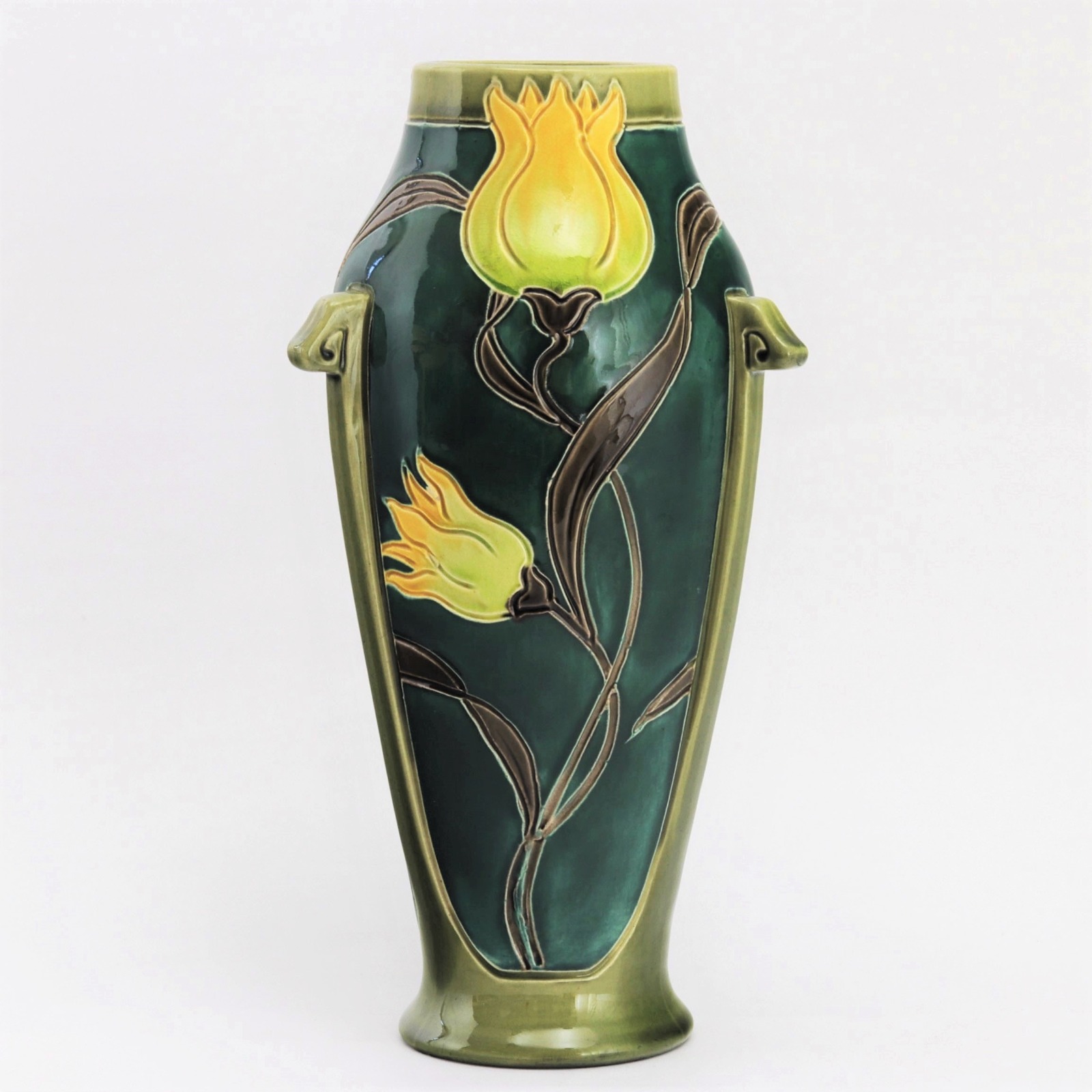 Tall Burmantofts Faience Decorated Art Nouveau Pottery Vase C.1900