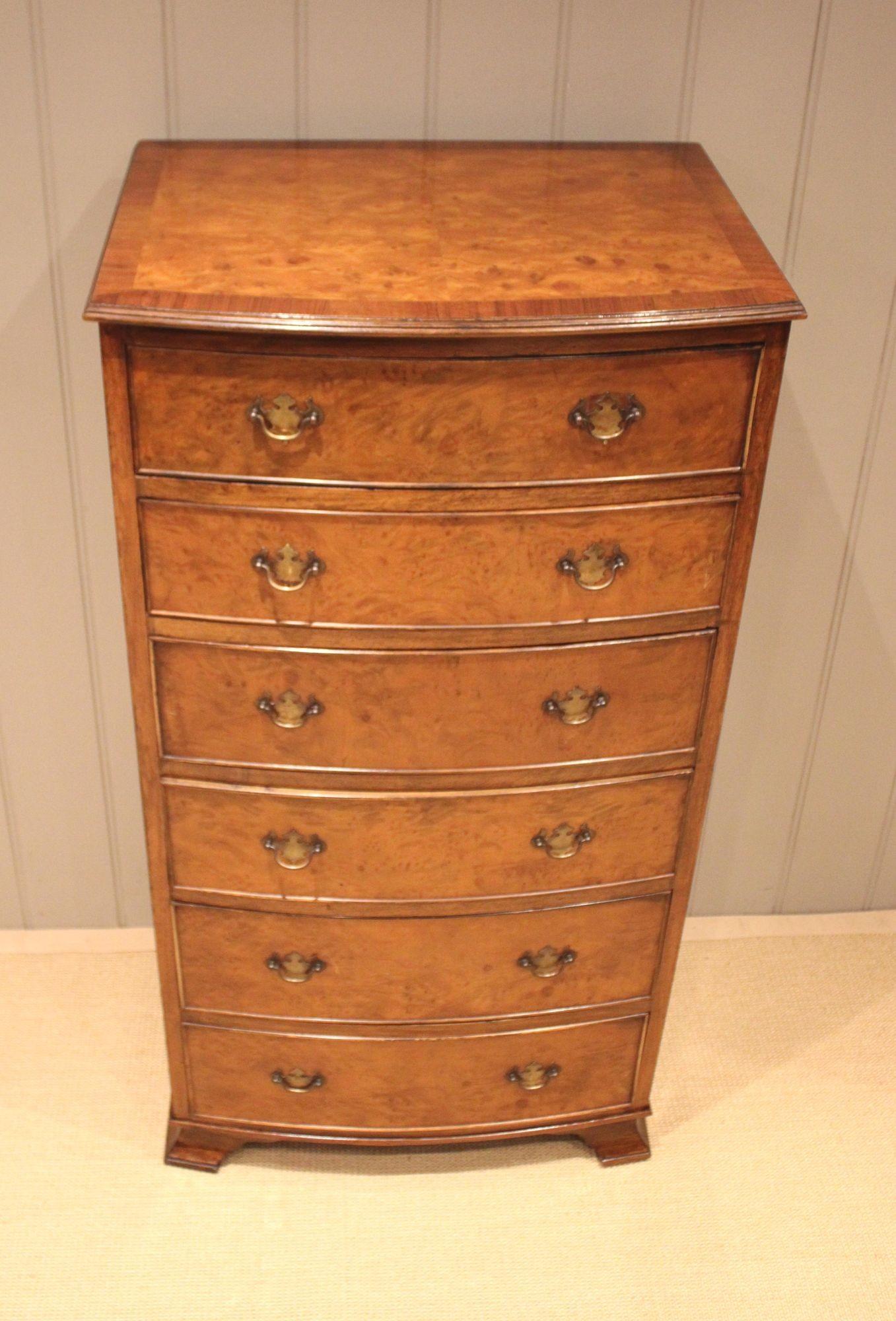 Tall Burr Maple & Walnut Chest Of Drawers
