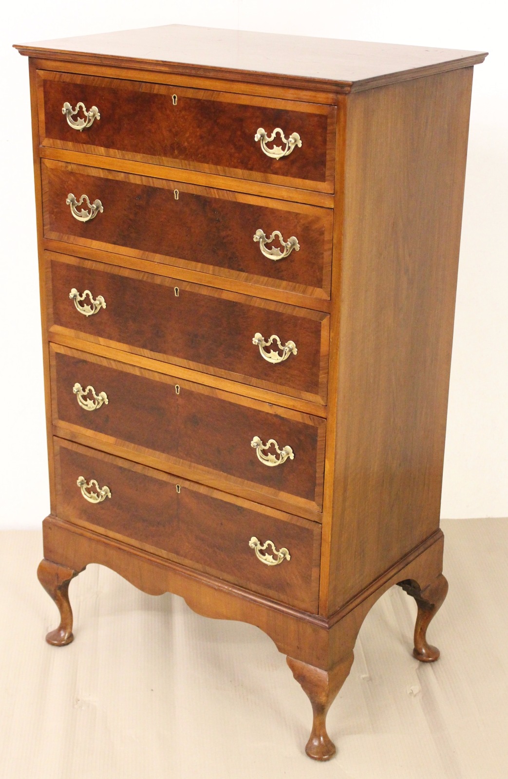 Tall Burr Walnut Chest of Drawers (1 of 1)