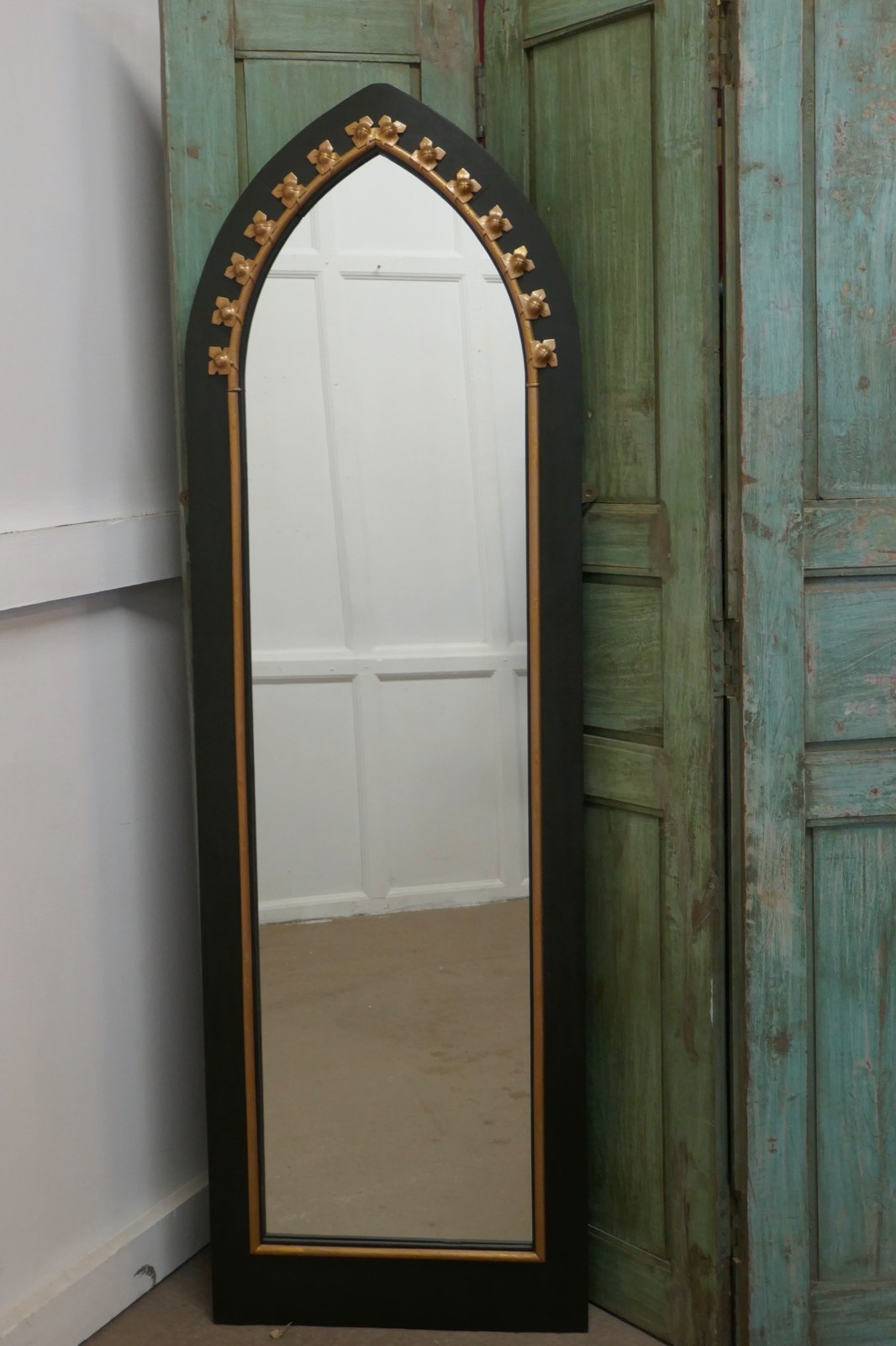 Tall Console Mirror, with Arts & Crafts Gothic Frame