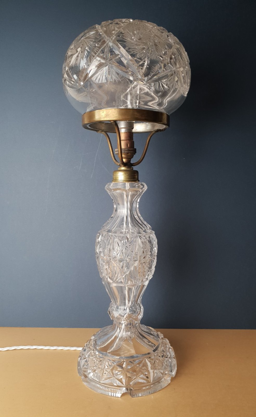 Tall Cut Crystal Tiffany Lamp; Rewired & Pat Tested c.1910