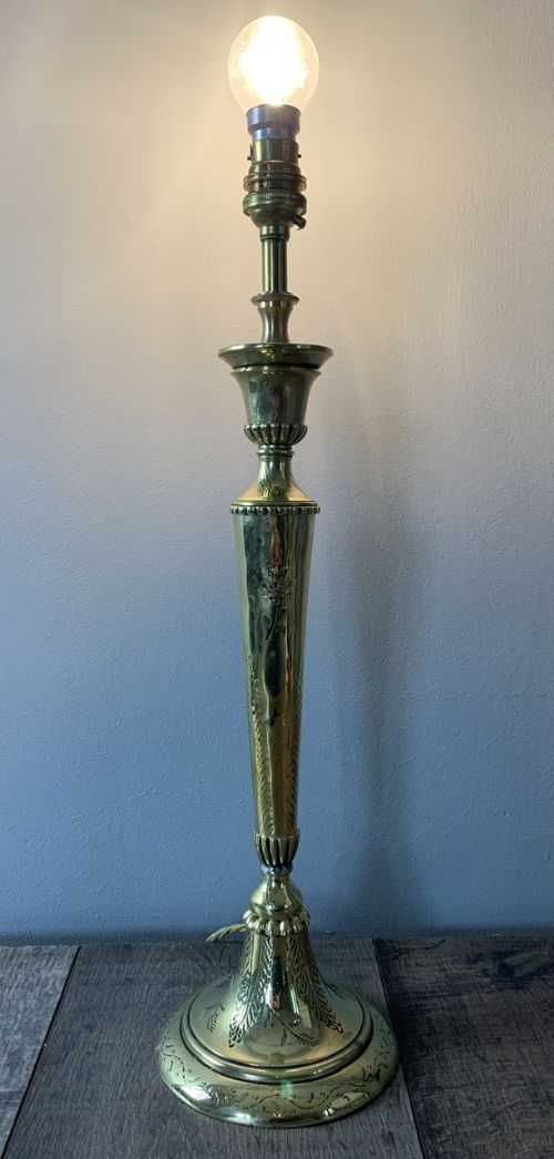 Tall Decorative Converted Candlestick Brass Table Lamp, Rewired & PAT Tested