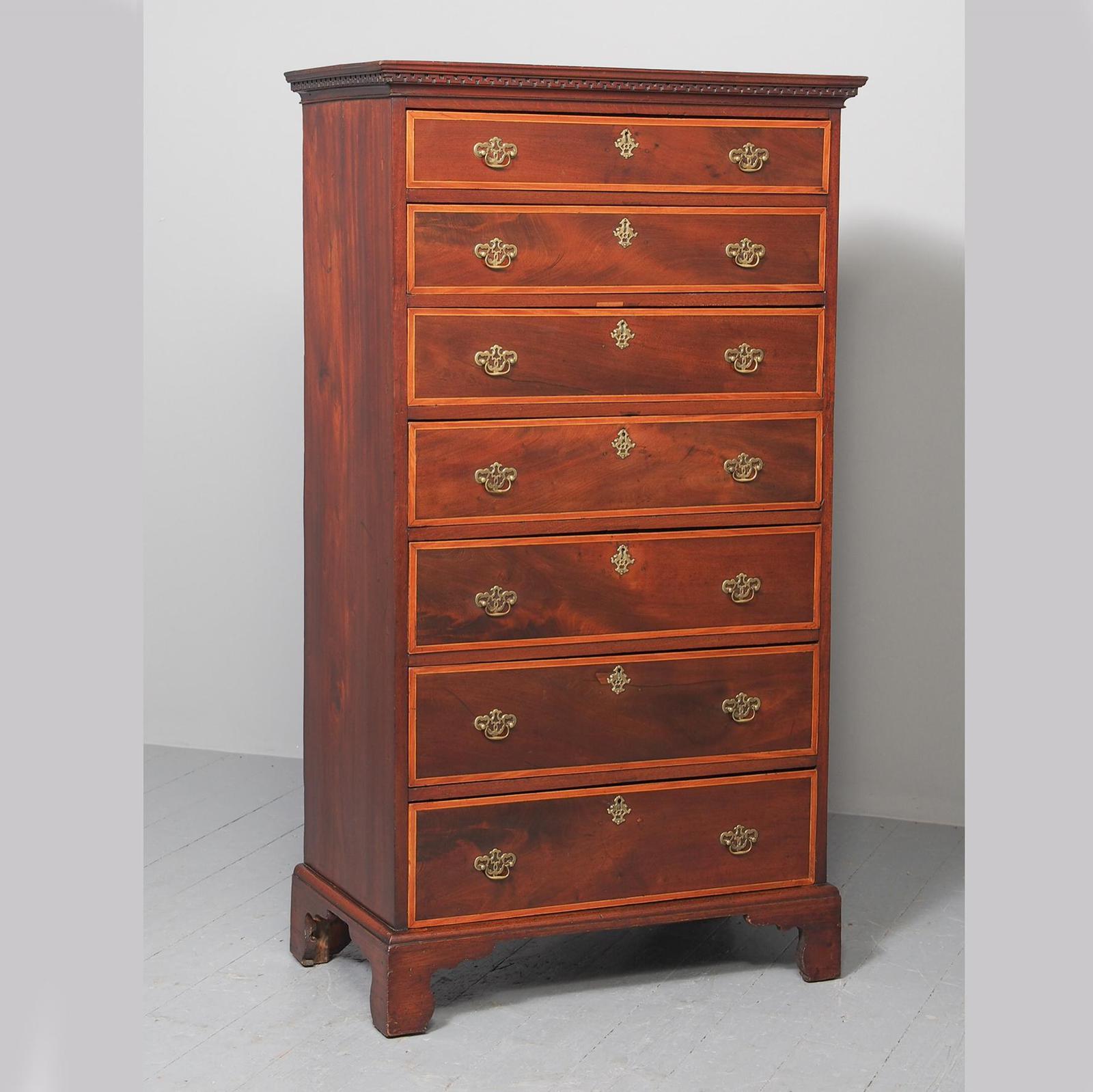 Tall George III Irish Inlaid Mahogany Chest of Drawers
