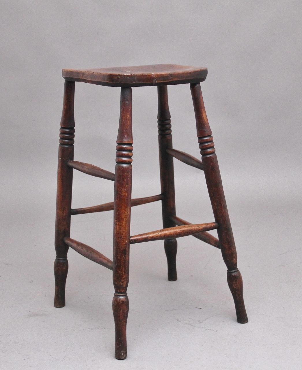 Tall Mid 19th Century Ash & Elm Stool (1 of 8)