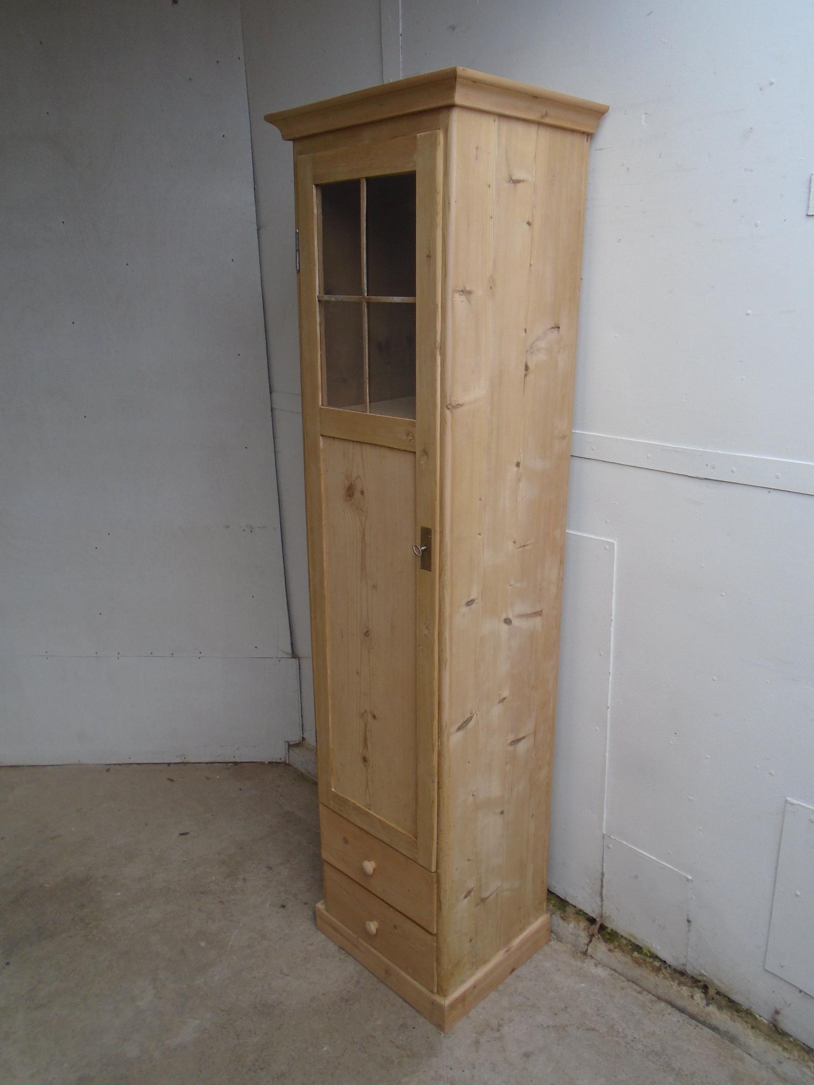 Tall Narrow 1 Door 2 Drawer Antique Pine Kitchen Cabinet to wax / paint