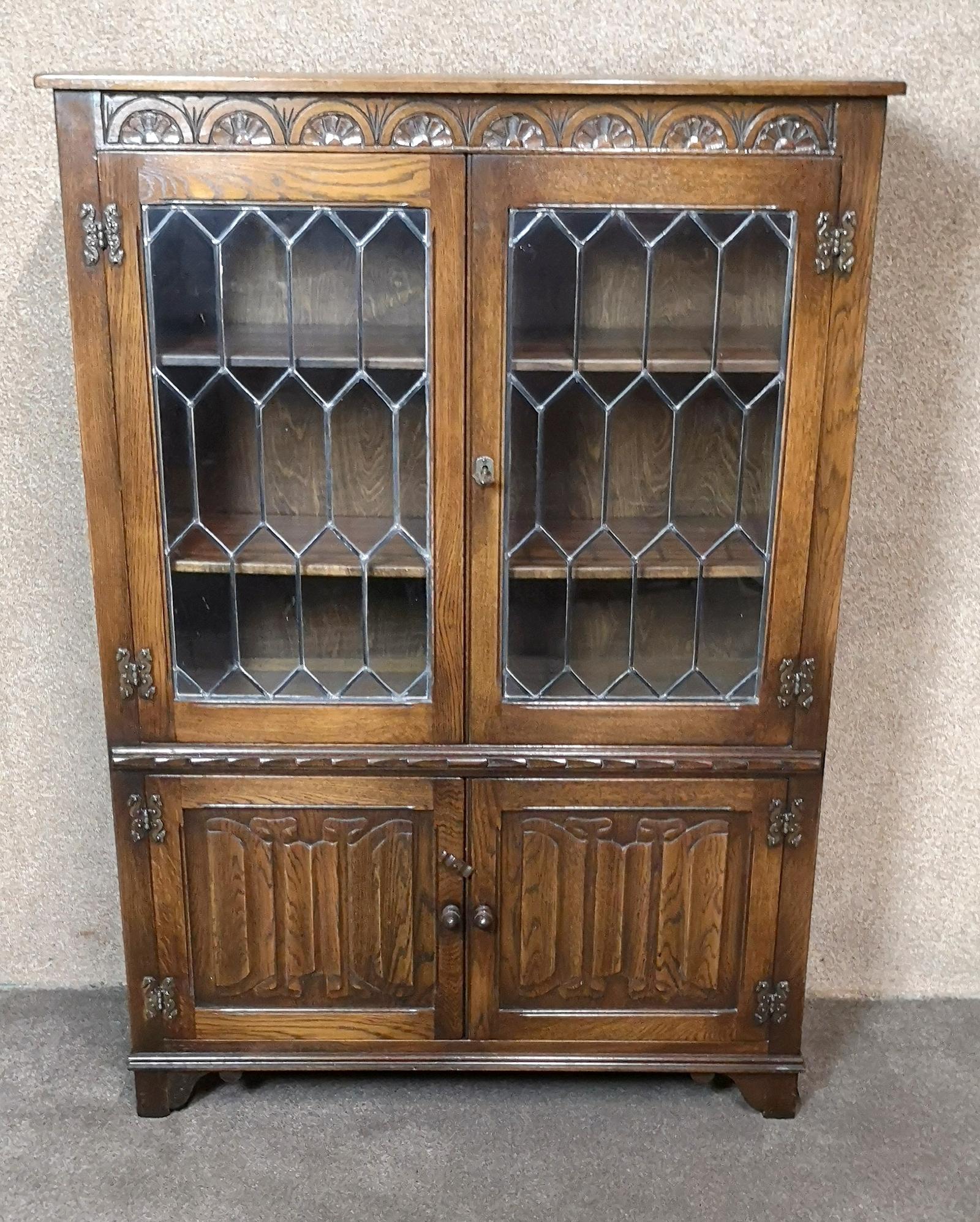 Tall Oak Bookcase / Cabinet With Carved Linen Fold Panels (1 of 11)