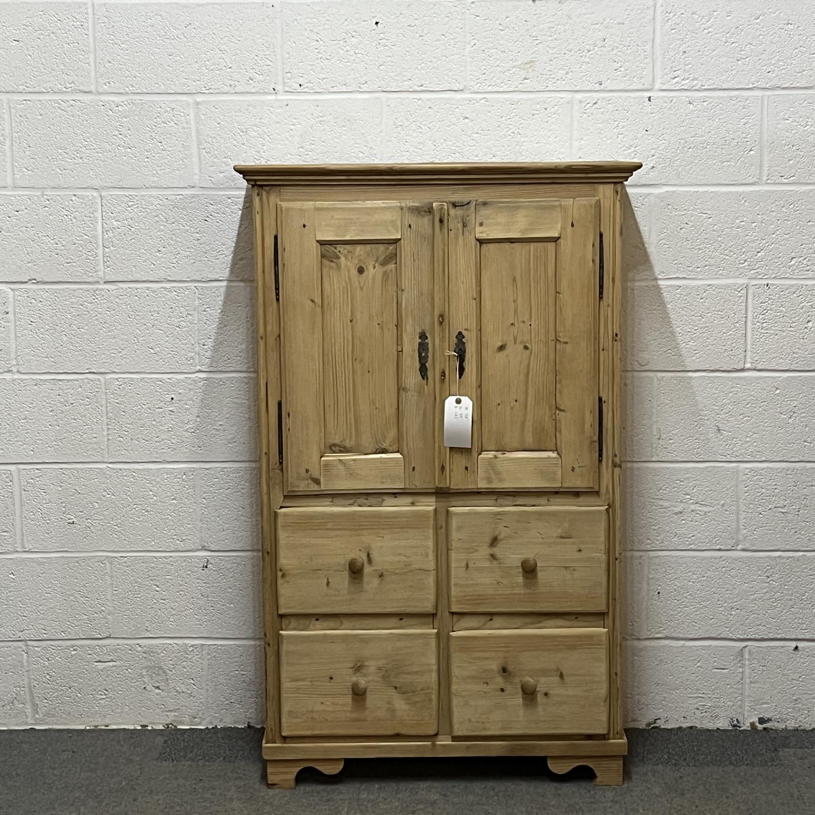 Tall Old Pine Cupboard 2 Doors Above 4 Drawers