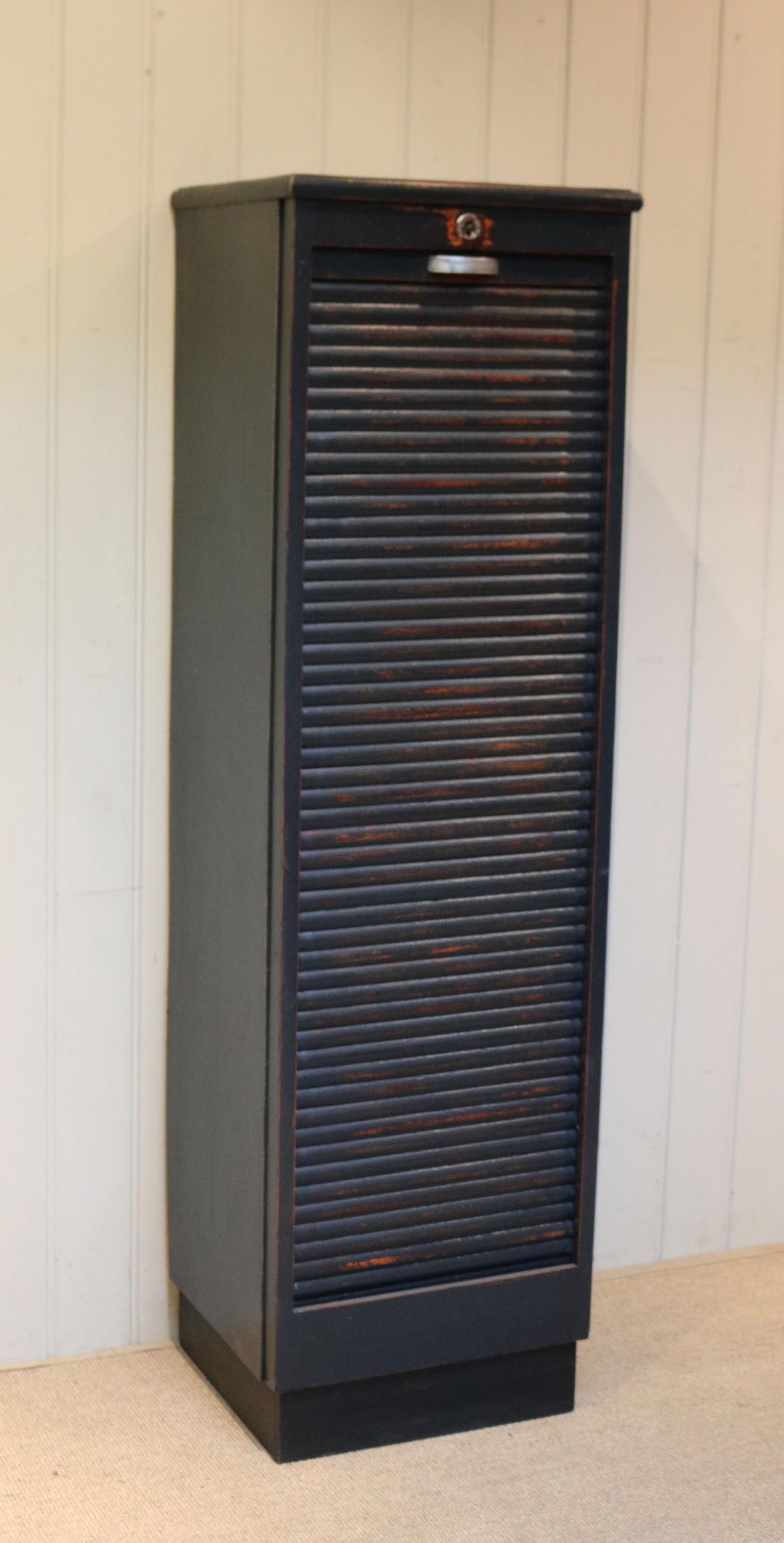 Tall Painted Tambour Front Filing Cabinet